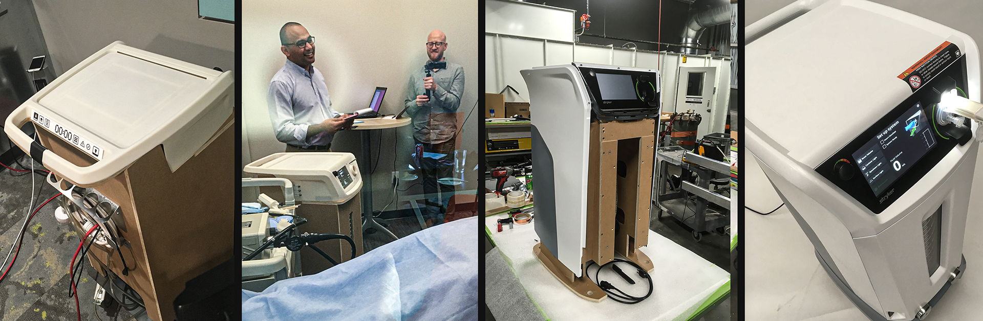 Process images: Above - Early thumbnail sketches and CAD studies incorporating Stryker's design principles. Below: We made a series of prototypes from foam core scale models to rough, functioning models ready for test during the formative studies. Dr. Amrish Chourasia (Pictured) lead the human factors effort.
